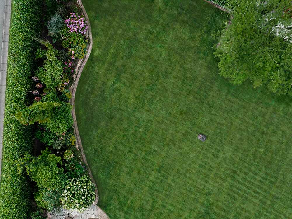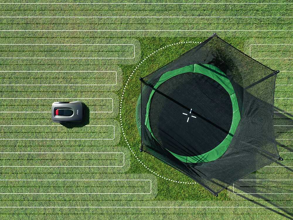 Indem er genau weiß, wann und wo gemäht werden muss, kann der Mähroboter während des Schneidens